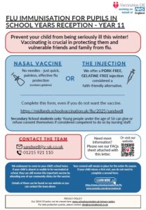 You may have seen the adverts on TV or online for seasonal flu vaccinations for young people and adults. All students can receive a flu vaccine for free, in school in the next few weeks. Flu is different from a cold or feeling a little unwell, it can lead to serious illness. Vaccination is crucial in protecting your child and others around them, who may be vulnerable and may not be able to have the vaccination themselves. We support the NHS in recommending as many students to take the vaccine as possible.