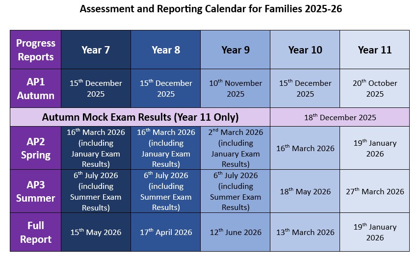 Here are the three main reports that you will receive each year. They are published at different times depending on the year group.