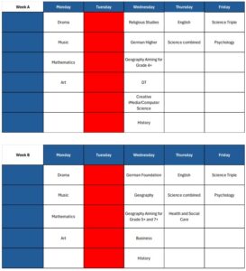 Please note that the study support timetable operates on a two-week rotation, starting Week A on the week beginning Monday 29th September. Subjects such as English and Maths will run every week, while other subjects may alternate over the two weeks.